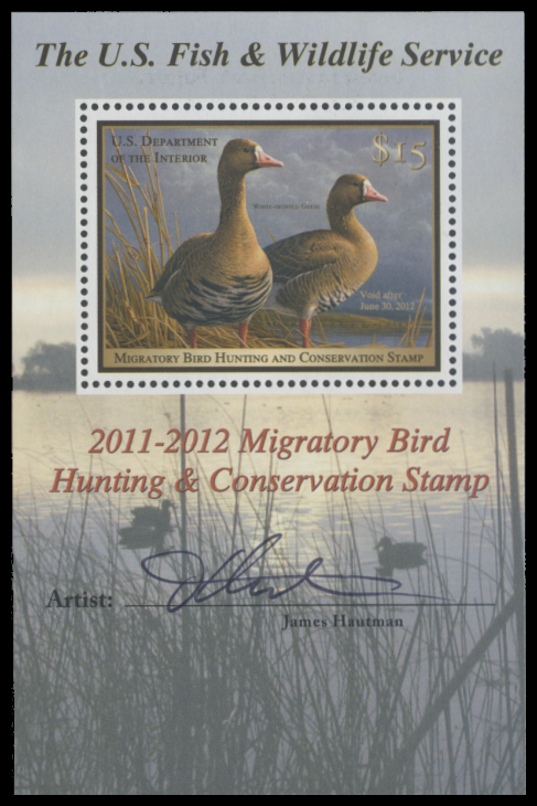 RW78B 2011 Federal Duck Stamp. Mint Never Hinged. Fine - Very Fine. White-front Geese by Jim Hautman.
