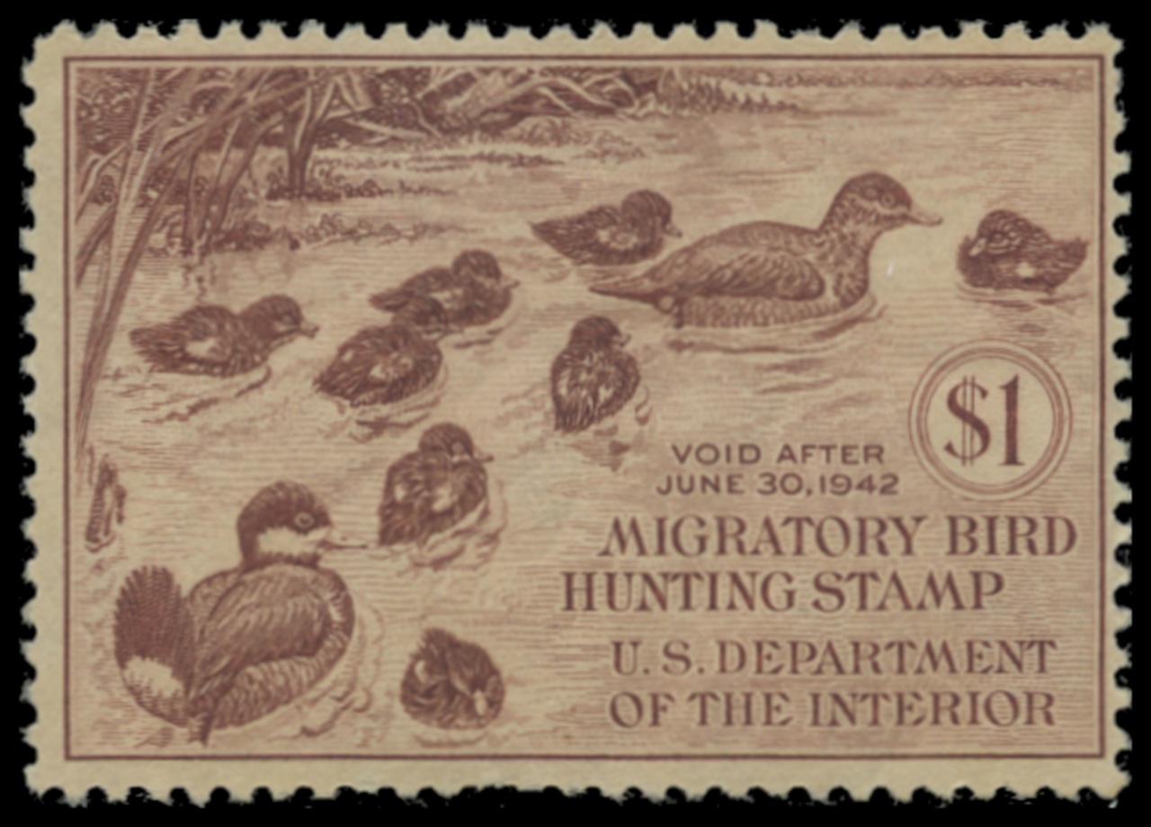 RW8 1941 Federal Duck Stamp. Mint Lightly Hinged. Fine - Very Fine. Family of Ruddy Ducks by E. R. Kalmbach.