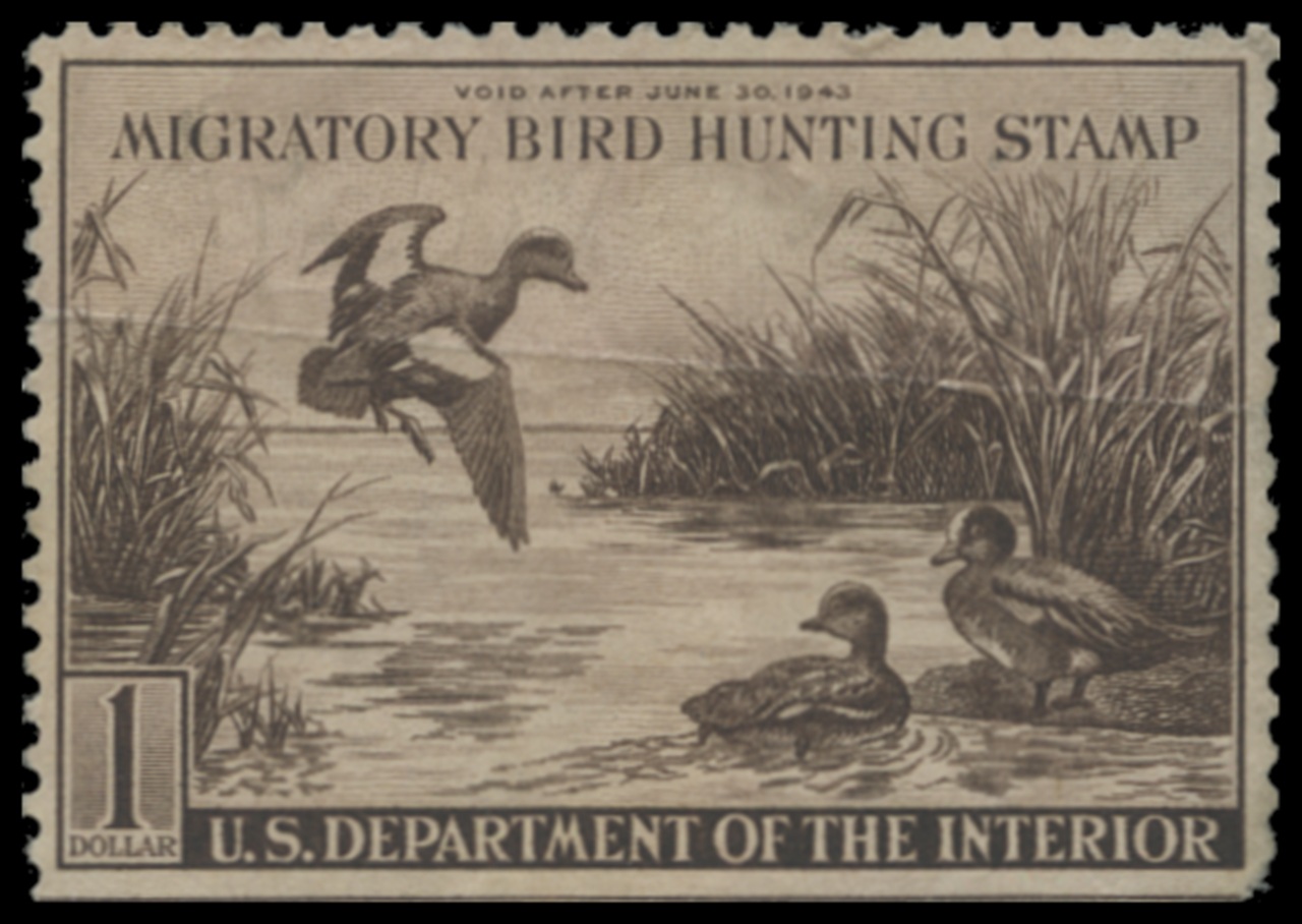 RW9 1942 Federal Duck Stamp. Unsigned, No Gum. Fine - Very Fine. Widgeon by A. Lassell Ripley.